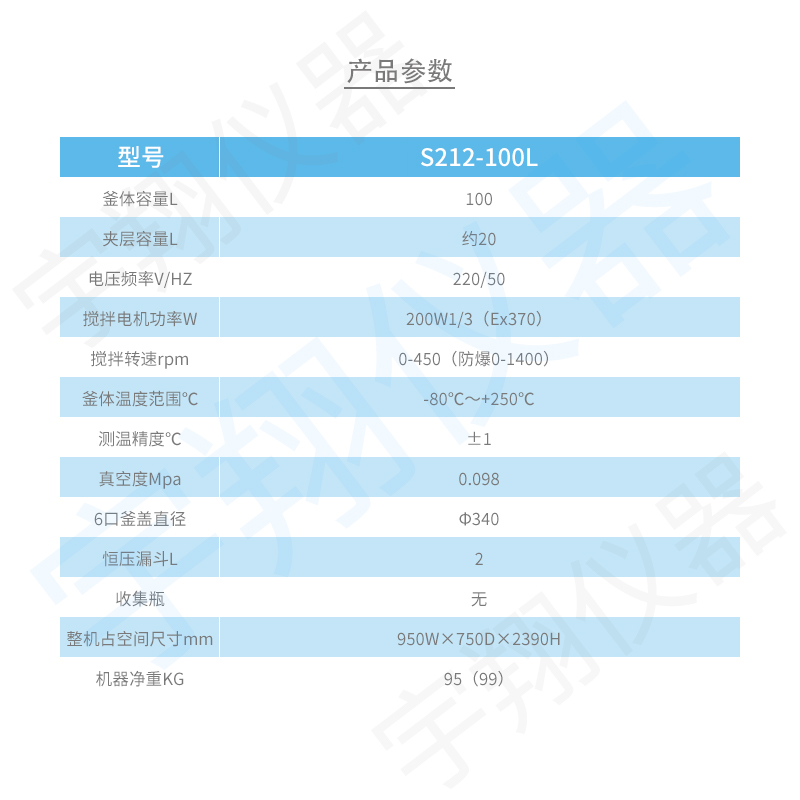 > 雙層玻璃反應釜 S212-100L