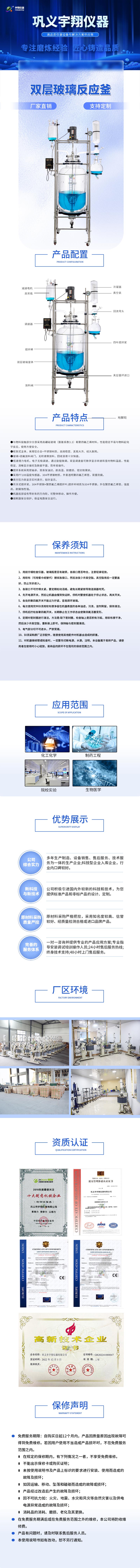 新型升降旋轉雙層玻璃反應釜 SJS212-(1-100L)