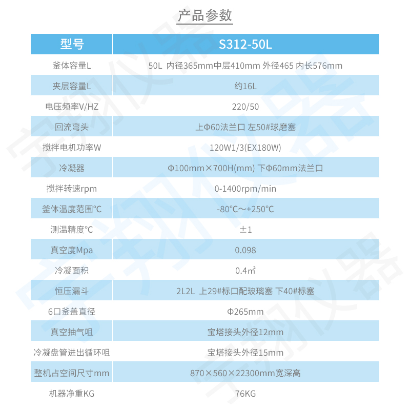 三層玻璃反應釜 S312-50L